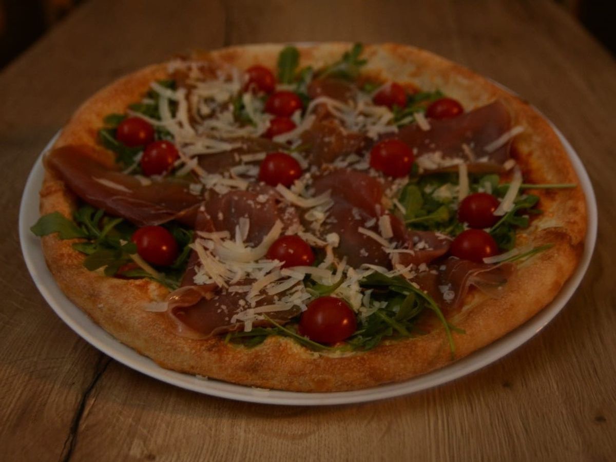 sos pizza , mozarella, chorizo, bacon, jalapeno